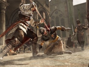На дворе 2009 год, и вот во все магазины завозят консольные версии Assassin’s Creed 2. Ubisoft исправила все свои ошибки и добавило множество всяких вкусностей. Первый плюс игры, это то, что наконец-то нам нормально рассказывают историю главного героя. Главный герой игры Эцио Аудиторе сынок богатых родителей, который не привык себе ни в чем отказывать, он меняет девушек как перчатки и ни когда не упустит хорошей драки. Игра начинается с того как Люси (если кто не помнит это помощница профессора из первой части) забегает к нам в комнату вся в крови и заставляет лечь в анимус. После подключения нам показывают ролик, в котором рожает женщина, после показывают ребенка, а нам предлагают понажимать кнопочки, подрыгать ногами, руками, повертеть головой и т.д.