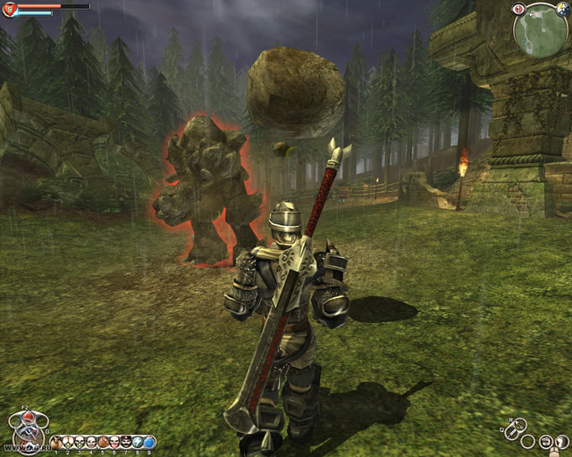 Боевая система немного примитивна, но получше чем в некоторых RPG. Магические атаки выглядят изумительно, а их комбинация вызывает восторг. Например, играя за воина, вам будет крайне полезно заклинание Berserk, превращающего итак большего воина в огромного зверя, который размахивает двуручнум мечом, словно держит в руке деревянную палочку; или как вам заклинание замедления времени, при котором вы наносите удары вдвое быстрее своих еле двигающихся противников. Стрельба из лука и арбалеты тоже сделаны не плохо, особенно радует способность выпускать стрелу прямо в голову противника…результат думаю всем очевиден. Но боевую систему угробила всего одна вещь: лечебные зелья. Их можно принимать в любом количестве в любое время. Таким образом, нас, практически, невозможно убить, а если даже и убьют, то мы всегда можем воспользоватся воскресающим зельем. Вот такой тут баланс, господа…